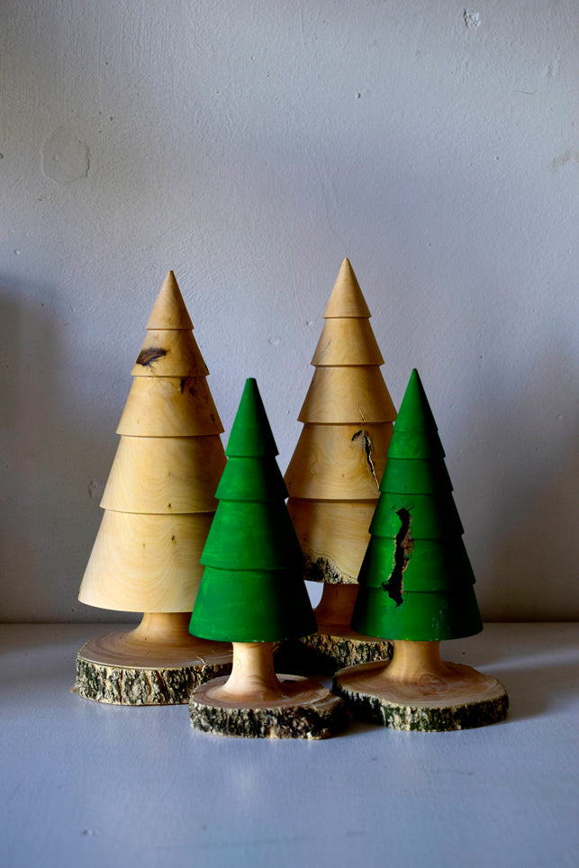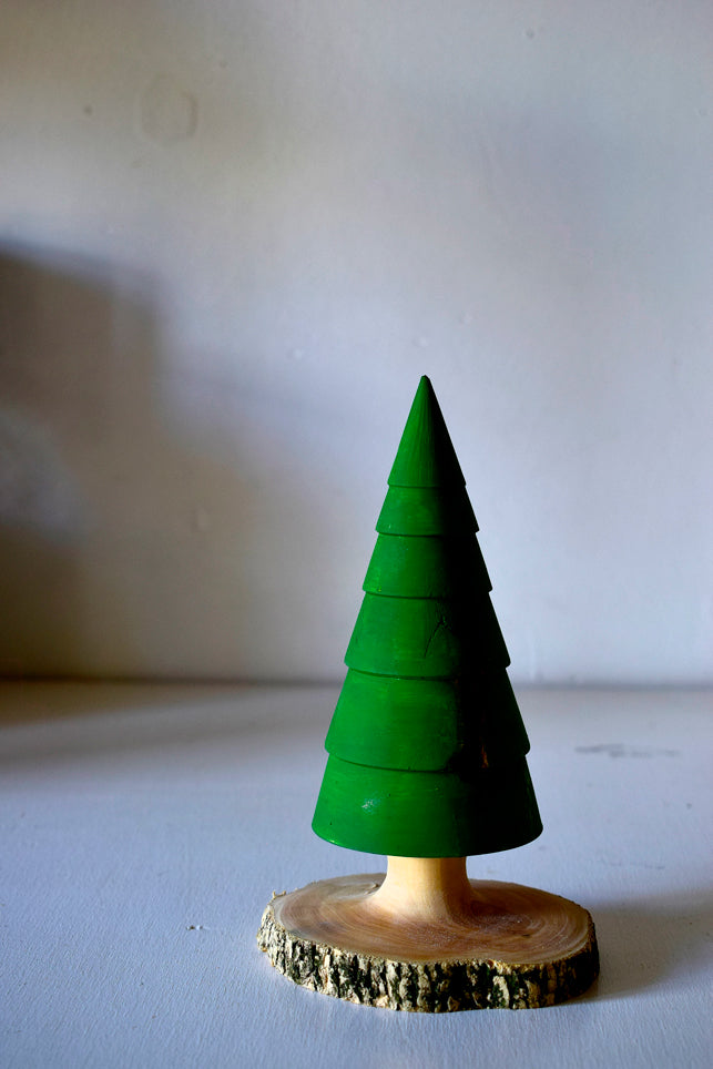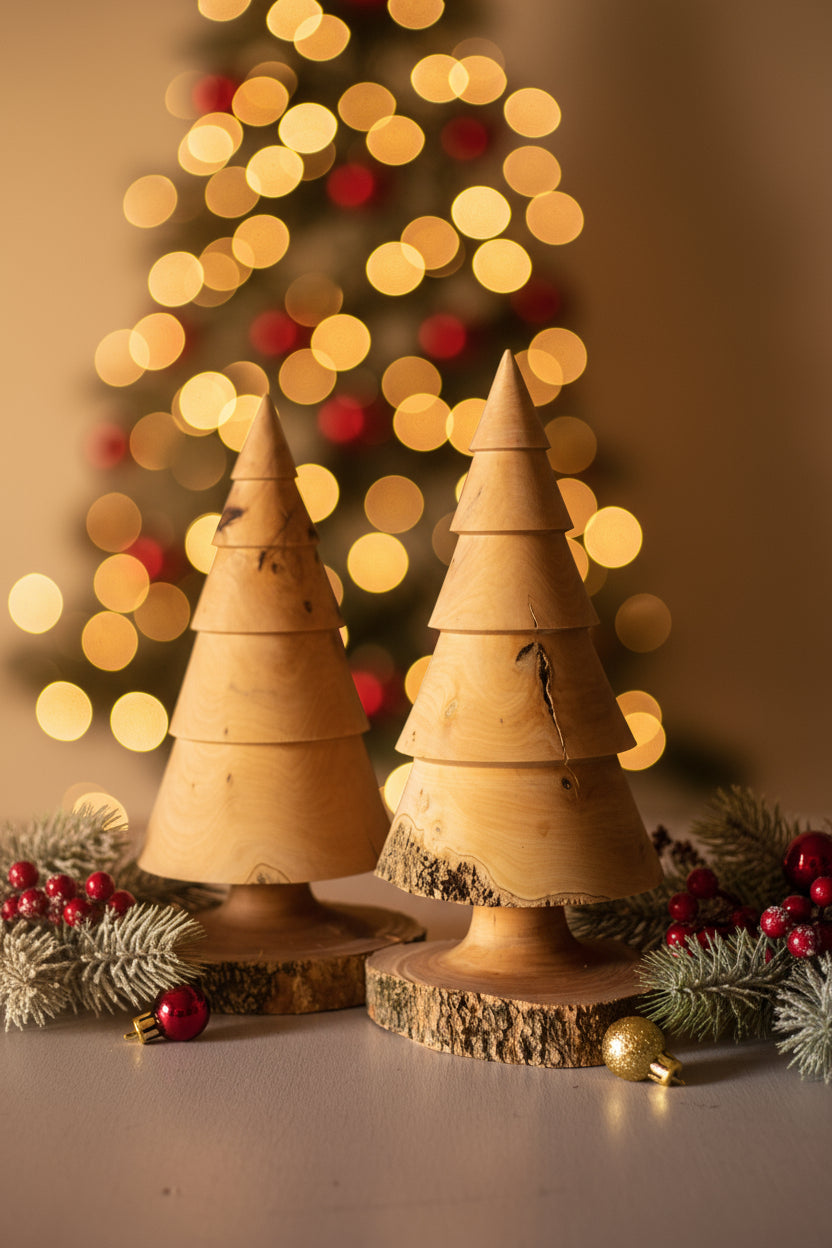 Albero di pino decorativo, atmosfera boschivo, decorazione natalizia in legno di Bosso.
