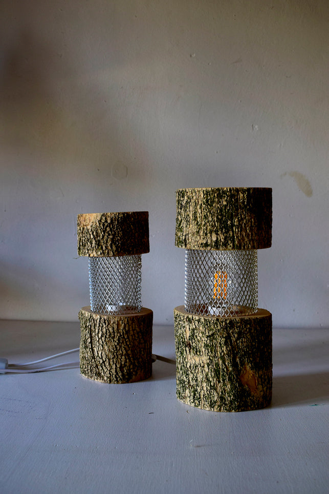 Lampada da tavolo, illuminazione camera, luce da mensola, realizzato in legno di Bosso.