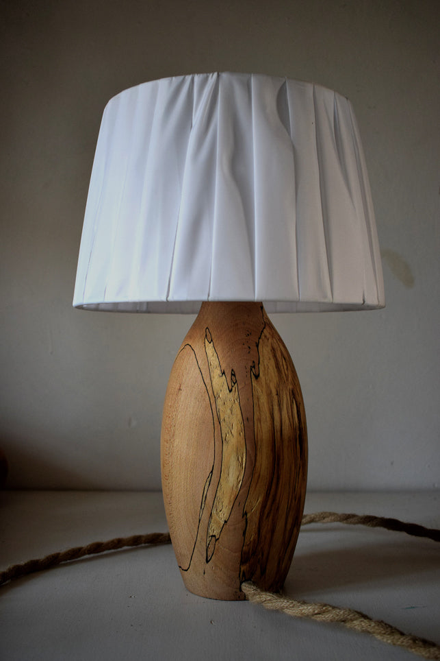 Lampada da tavolo, comodino, credenza realizzata con legno di Faggio.